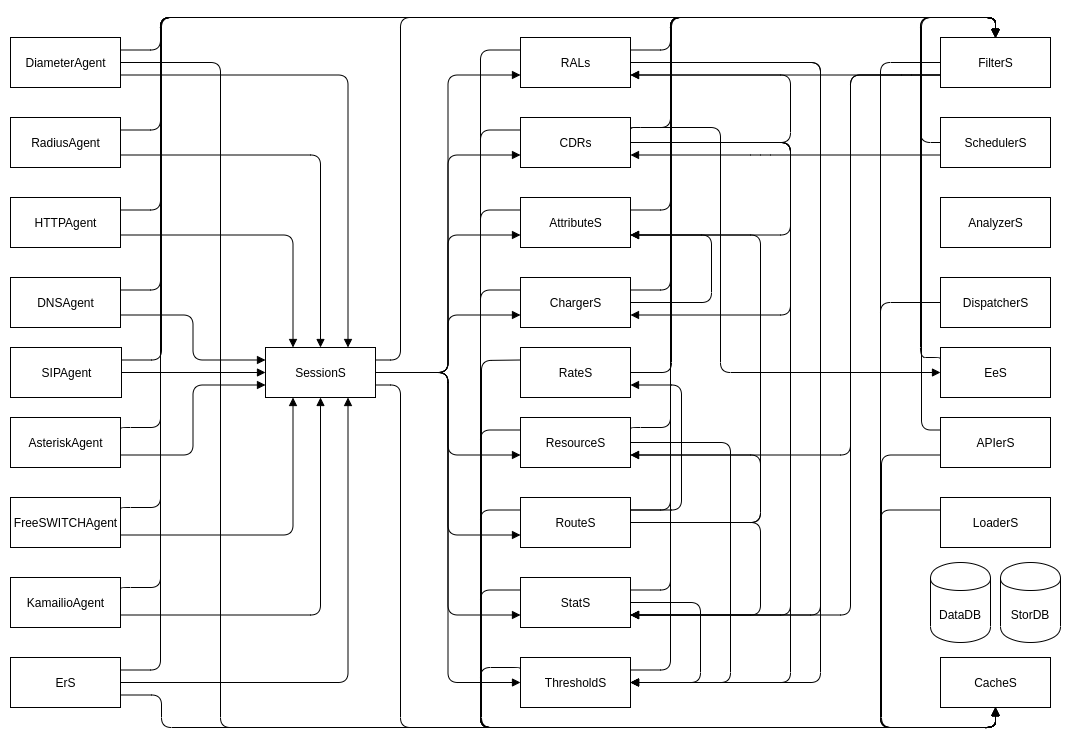 Each subsystem has a purpose, AttributeS transforms stuff, EeS exports CDRs, RALs applies our charging logic, CDRs writes CDRs to StorDB, etc, etc.