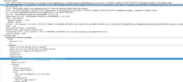 The two most common types of ServiceIndication keys you’ll see stored in RepositoryData are MMTEL-Services and IMS-ODB-Information. Each of these are defined by their own XML spec, but the MMTel-Services key is where all of our Call Forwarding, Caller ID Presentation/Restriction parameters live, while IMS-ODB-Information contains the parameters for Operator Defined barring – Both of these XML definitions we’ll dive into in a post of their own, but for now all you need to remember is that they’re stored transparently as XML on the HSS.