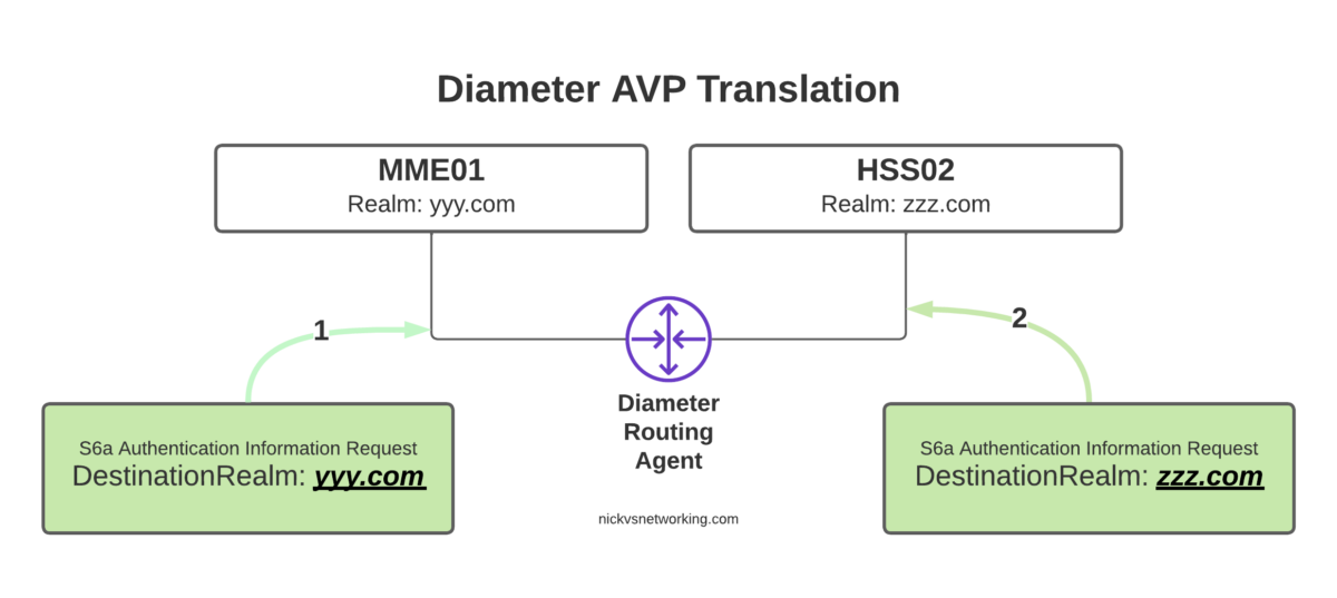 Well, what if we purchased another operator who used Realm X, and we use Realm Y, and we want to link the two networks, then we’d need to rewrite Realm Y to Realm X, and Realm X to Realm Y when they communicate, AVP transformations allow for this.