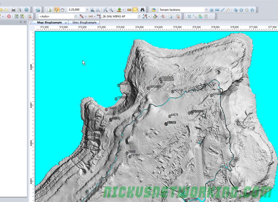 So now we’ve got Atoll configured for our part of the world, imported height data, population data and roads, and added some map layers so we can see what we’re up to.
