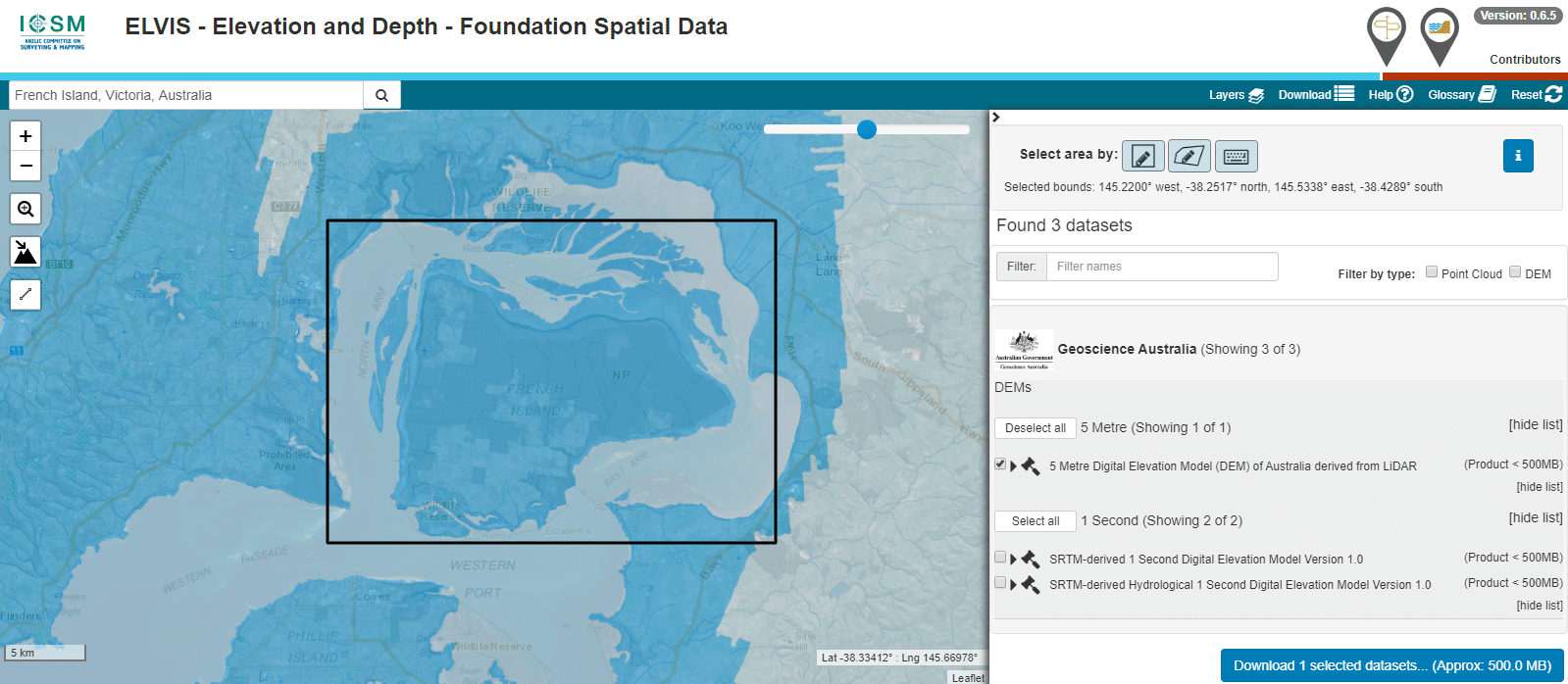 We’ll download the 5m DEM GDA94 UTM zone 48 Christmas Island.