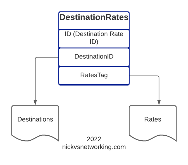 So for each entry we’ll define an ID, reference the Destination and the Rate to be applied, the other parts we’ll leave as boilerplate for now, and presto. We have linked our Destinations to Rates.