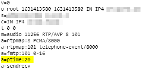So for a call with a ptime of 20ms at 8Khz this would be: