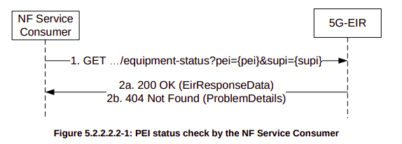 AMF: HTTP GET http://{apiRoot}/n5g-eir-eic/v1/equipment-status?pei=490154203237518
